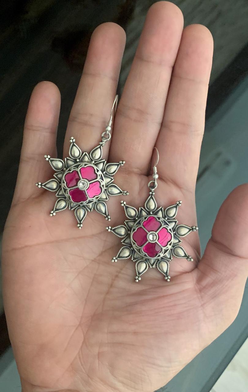 Pink Kundan antique earrings