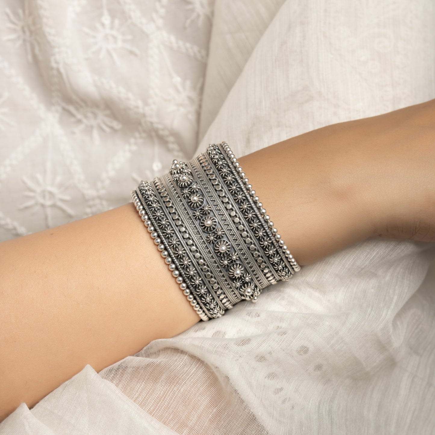Handmade beaten silver flat bangles