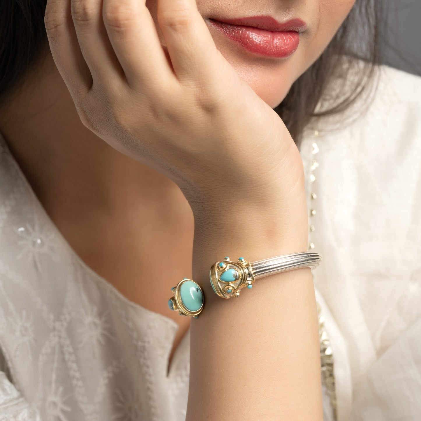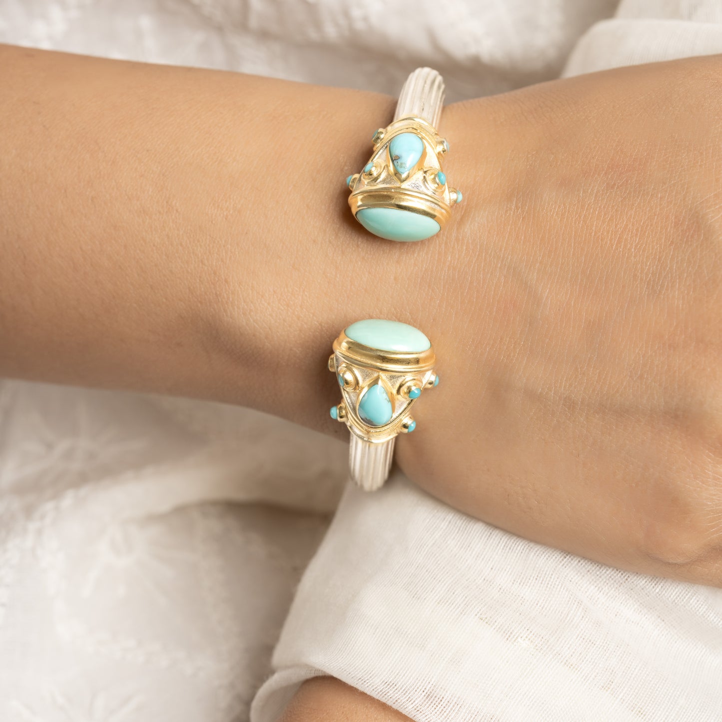 Exclusive Two Tone Openable Semi-Precious Cuff - Turquoise