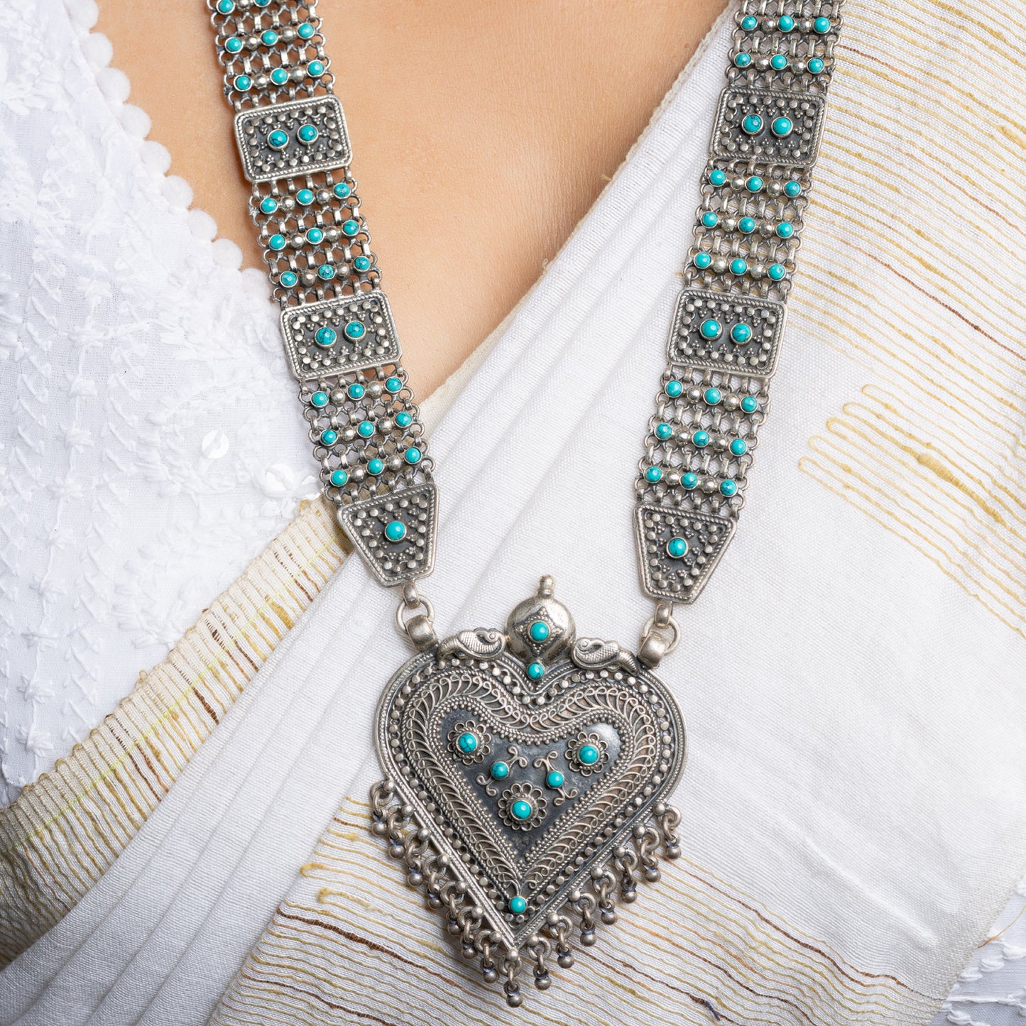 Exclusive Turquoise Necklace Set with Rawa Design