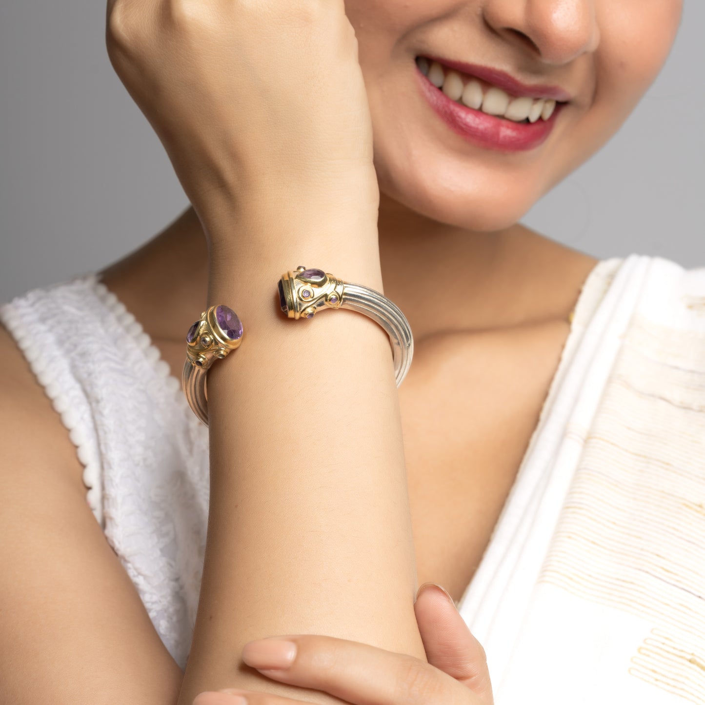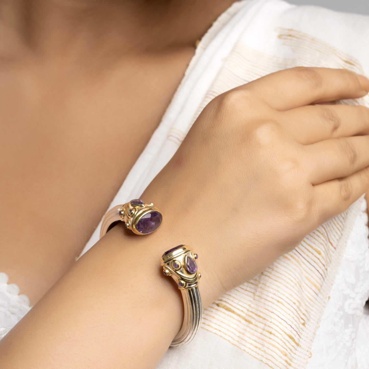 Exclusive Two Tone Openable Semi-Precious Cuff - Amethyst