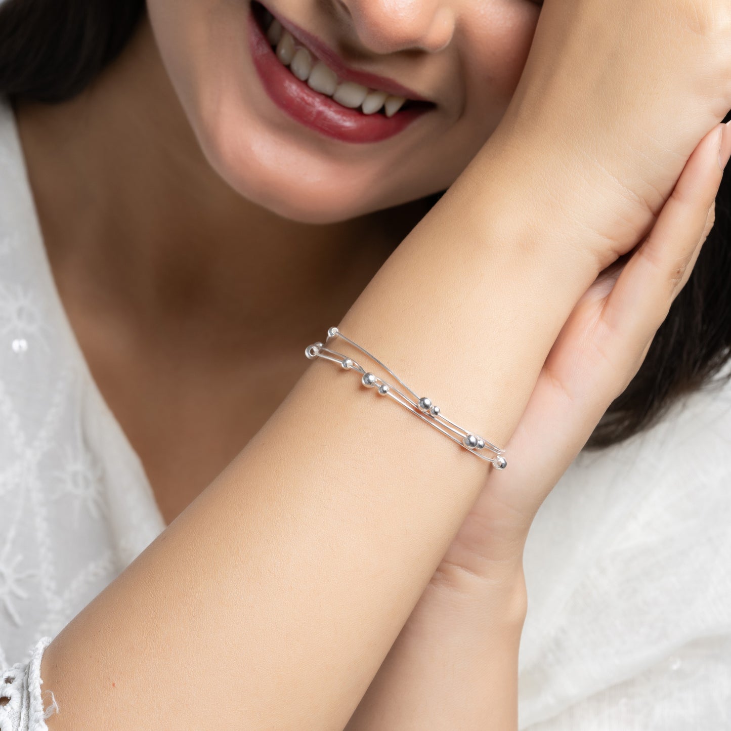 Fine Silver double line Ball Bracelet