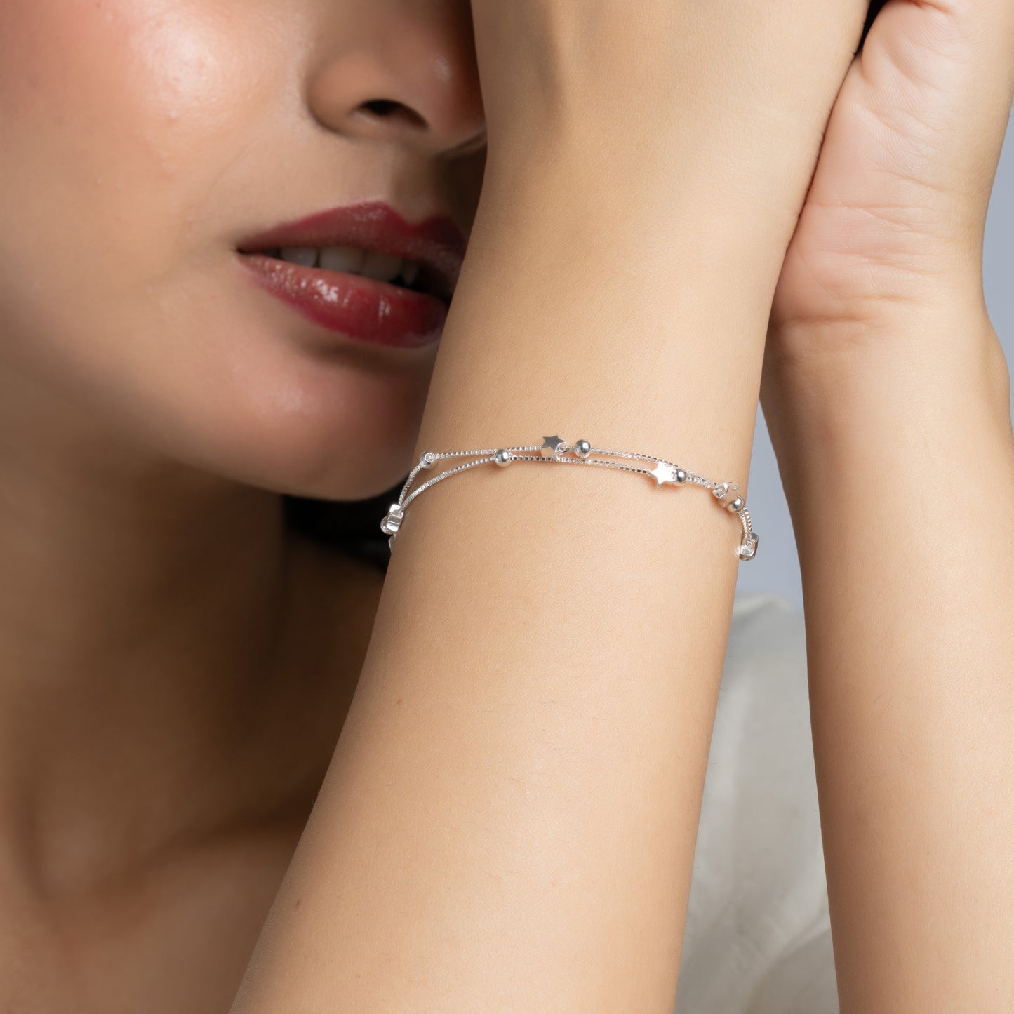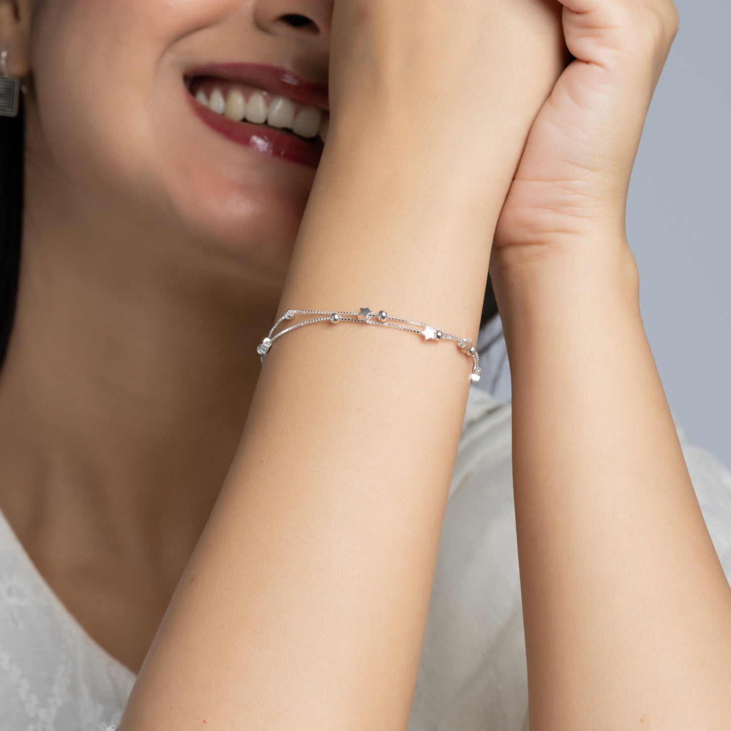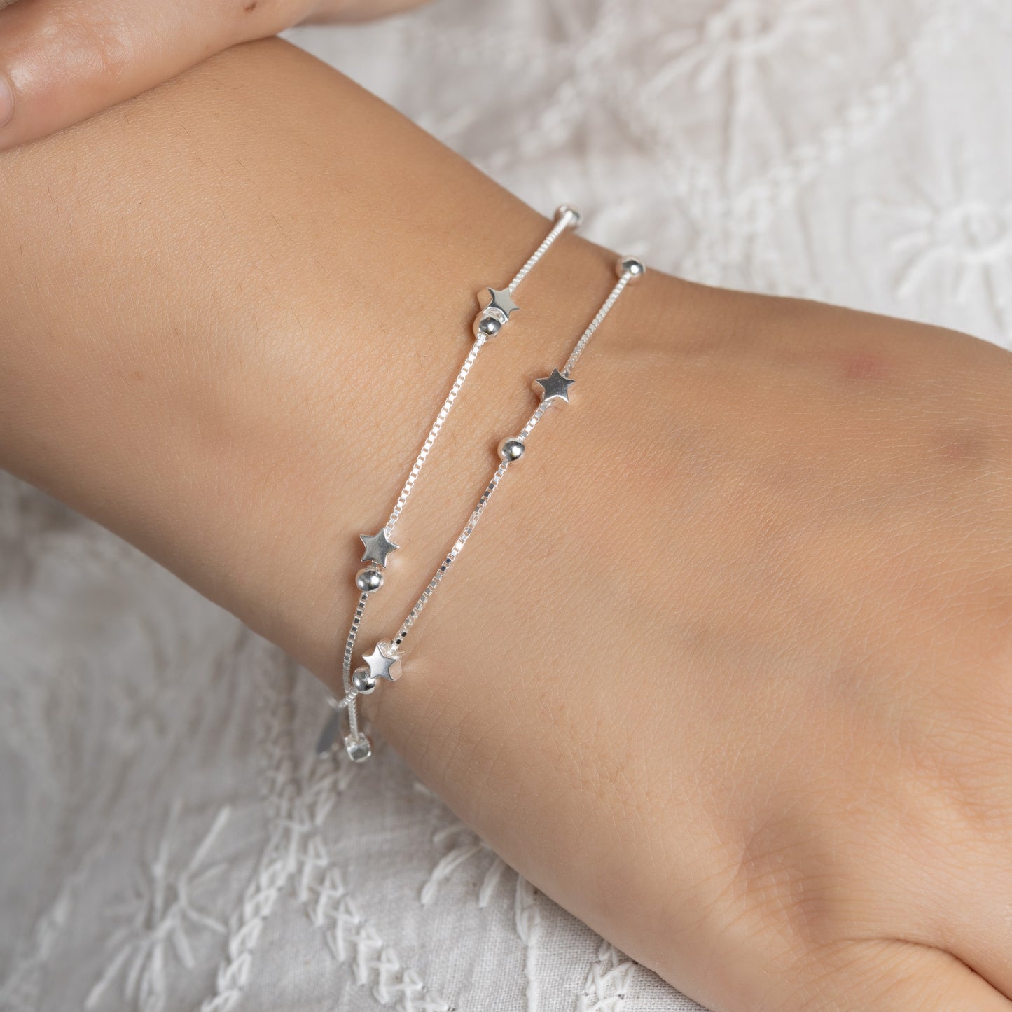 Silver double layered puffed Star Bracelet