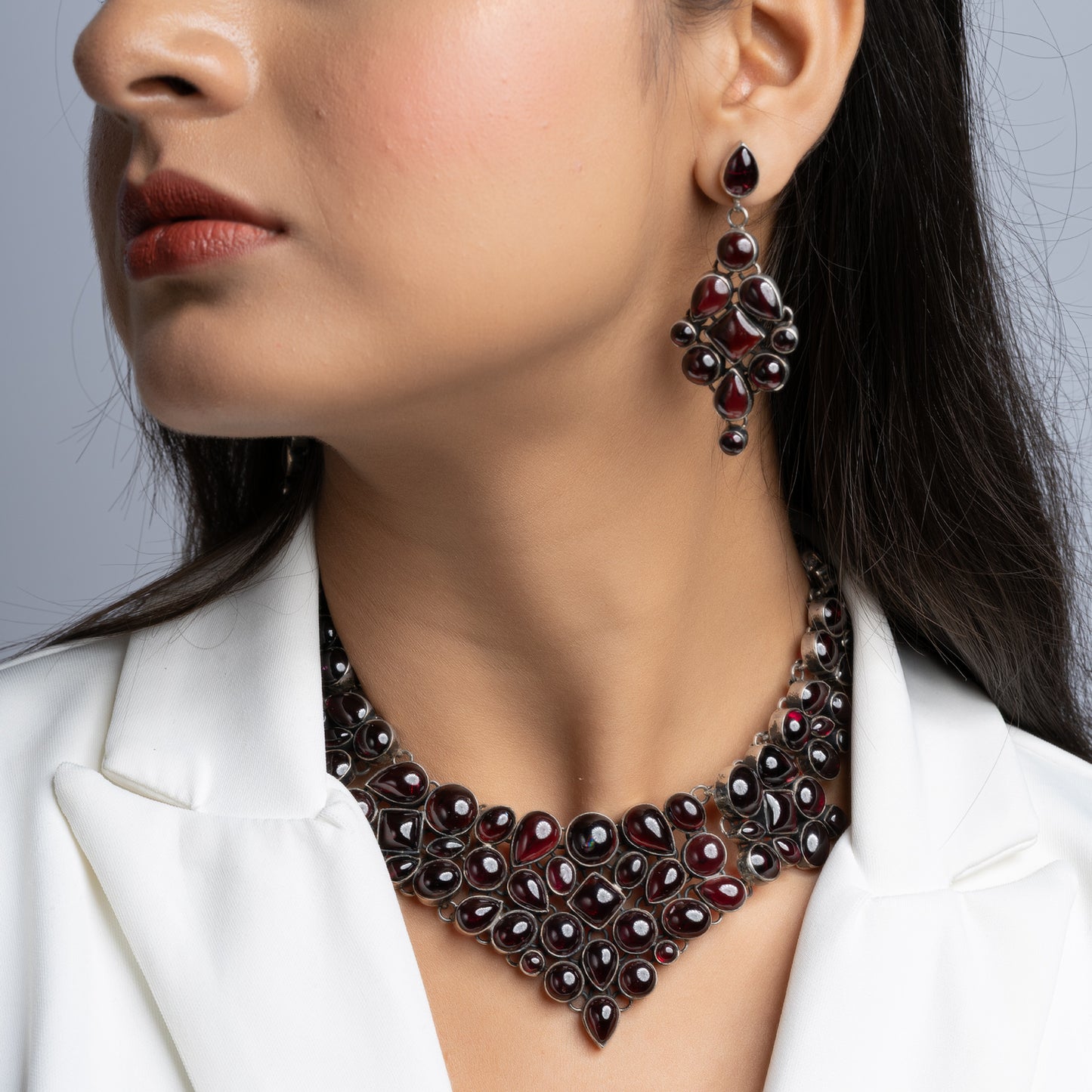 Silver Necklace Set Studded With Real Garnets