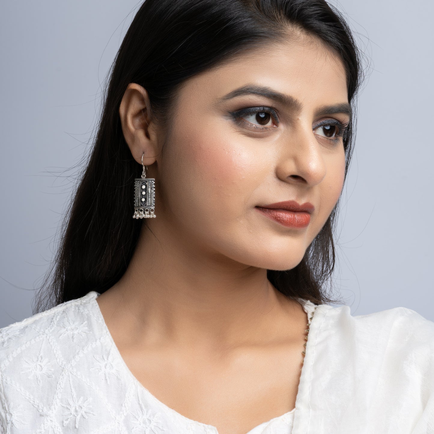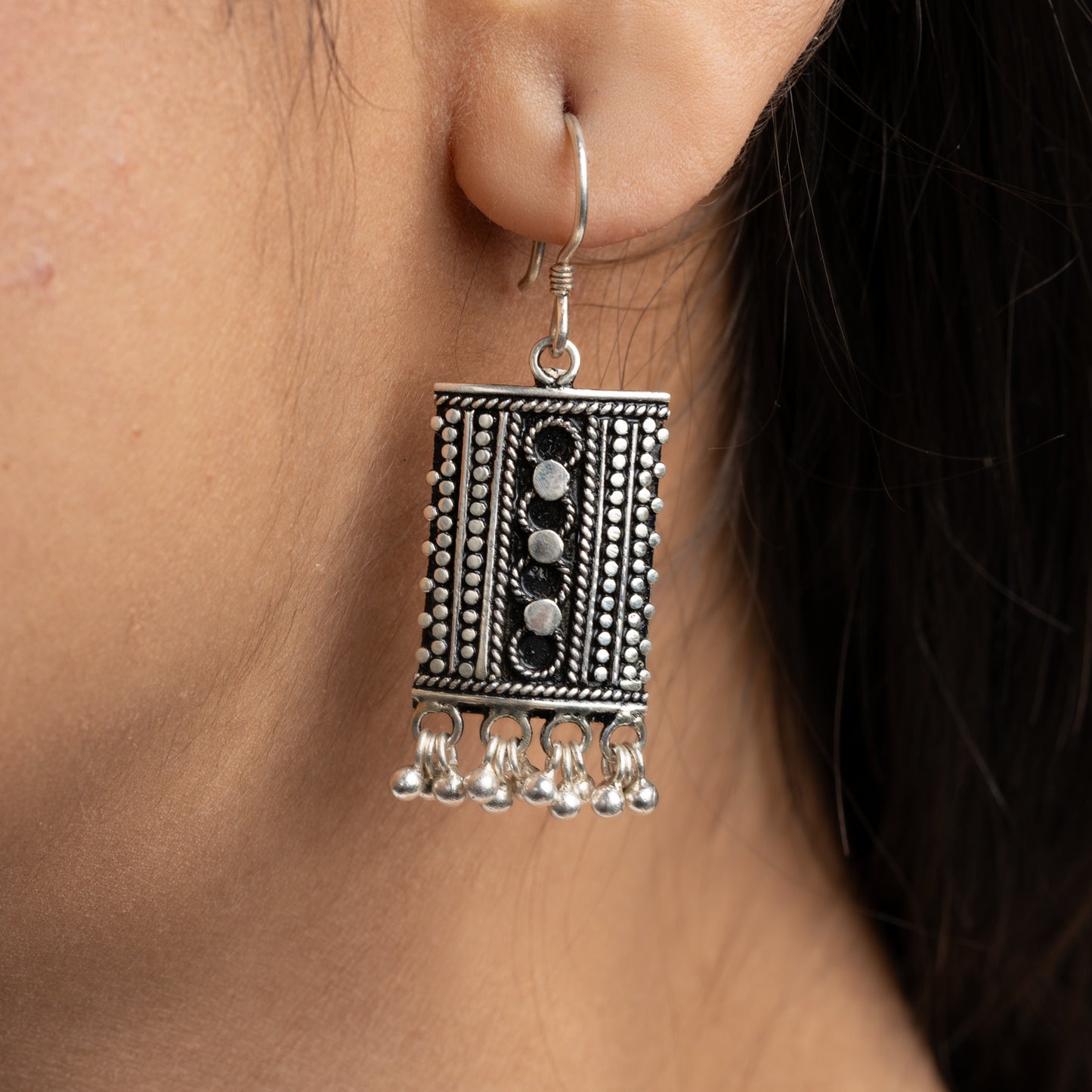 Add Silver Ghunghroo Rectangular Hoop Earrings to the cart