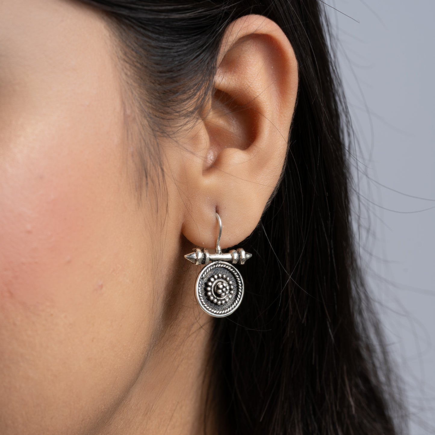 Silver Circle Rawa Design Handmade Shorthook Earrings