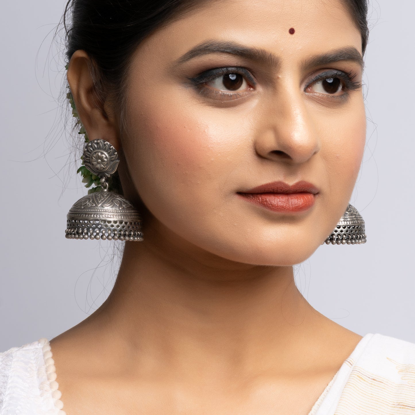 Silver Rajasthani Statement Carving Pasha Jhumka