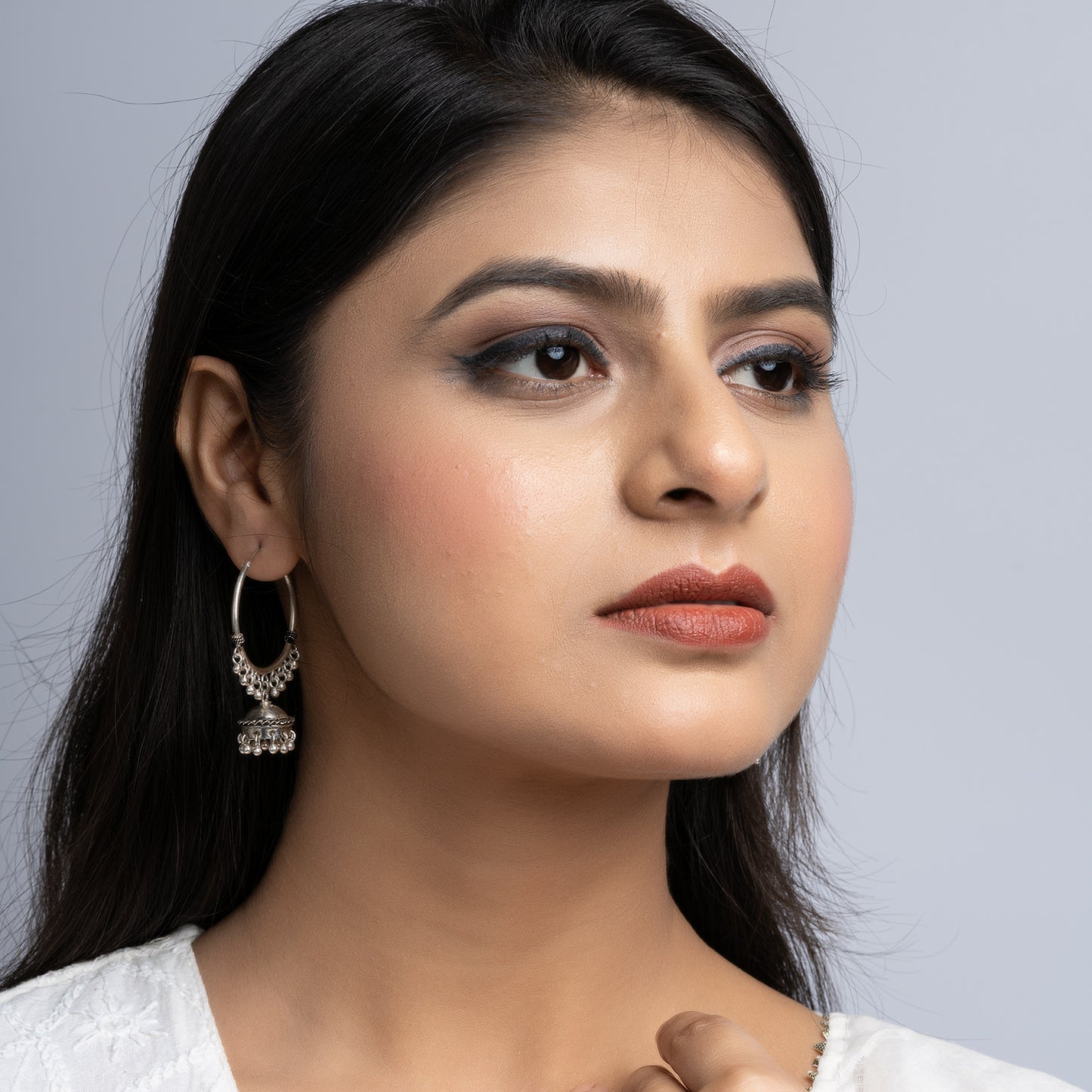 Add Silver Handmade Sleek - Hook Medium Jhumka to the cart