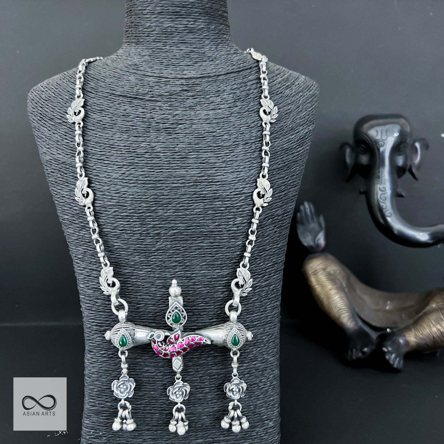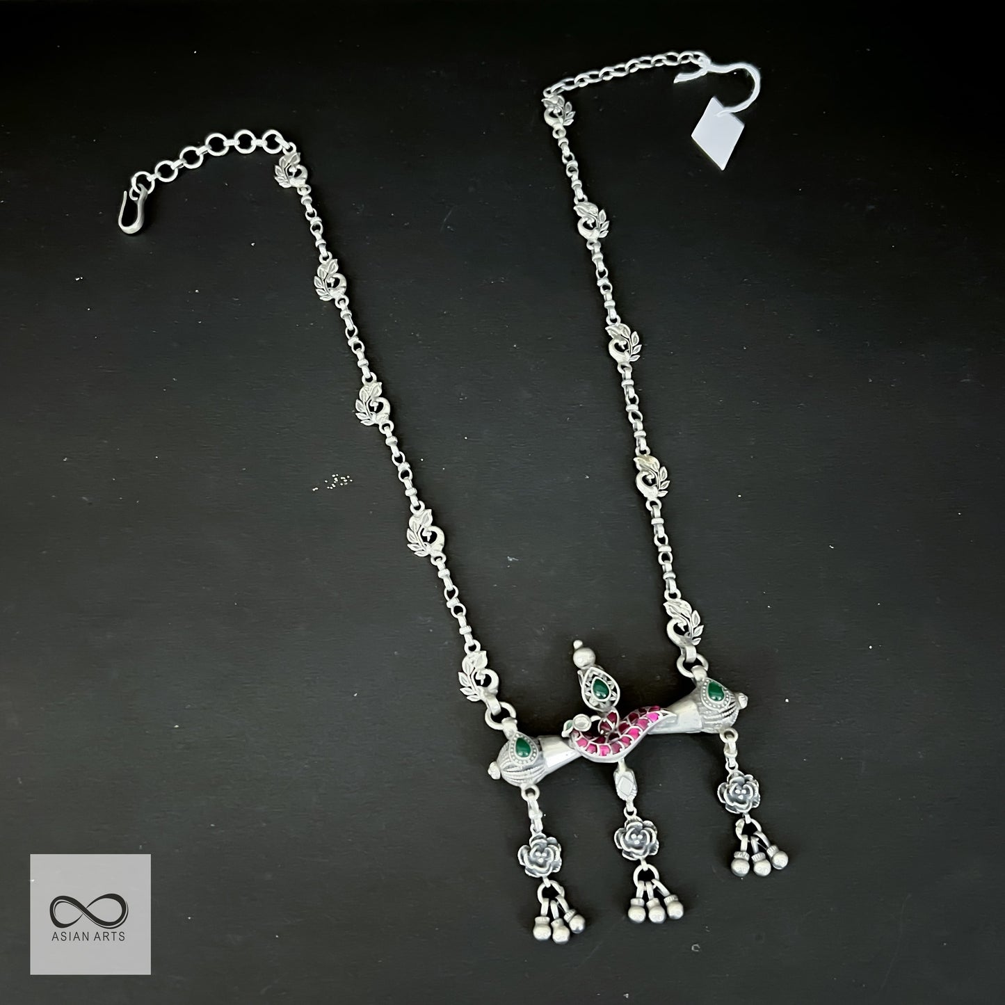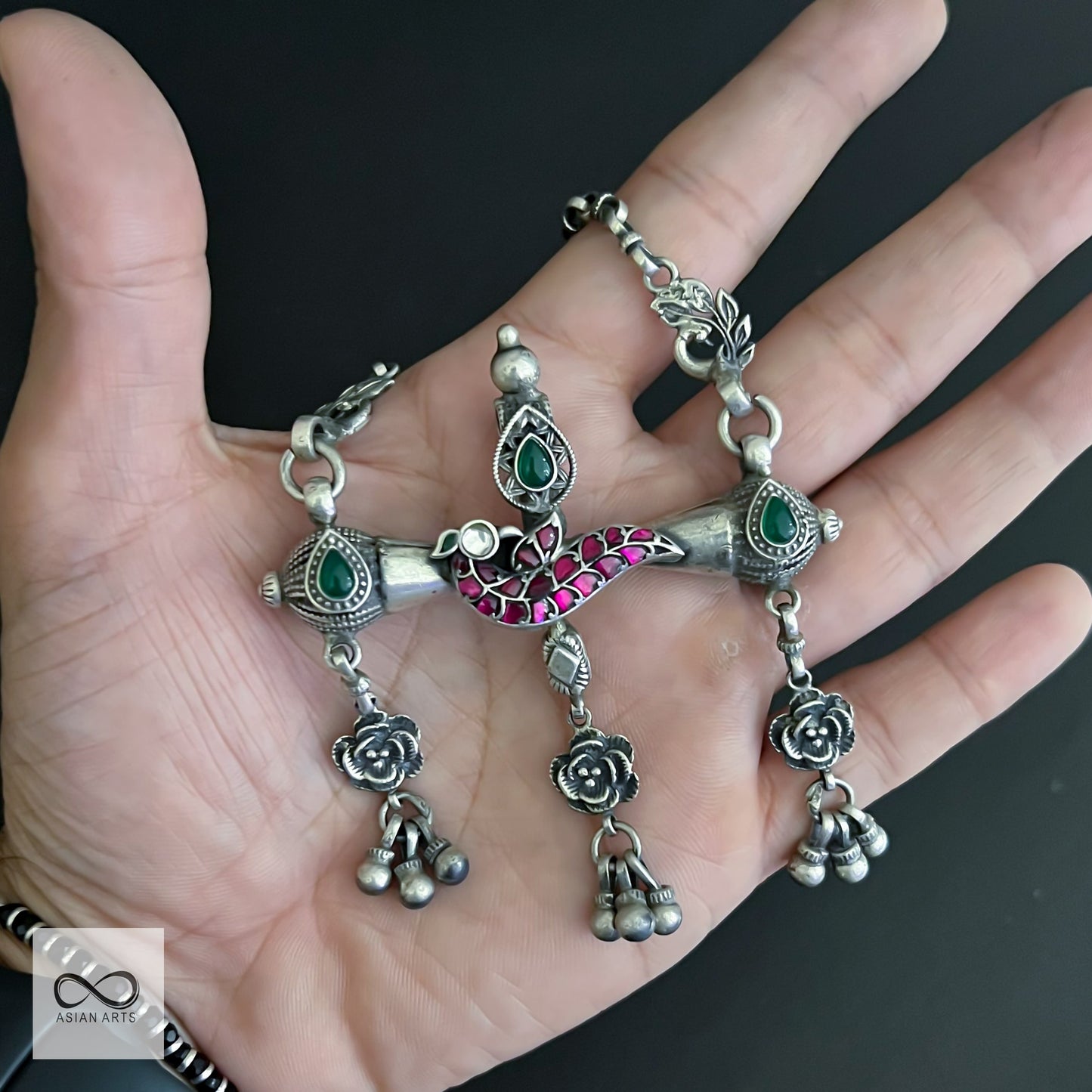 Silver carving Rajasthani Kundan Bird Carving Necklace