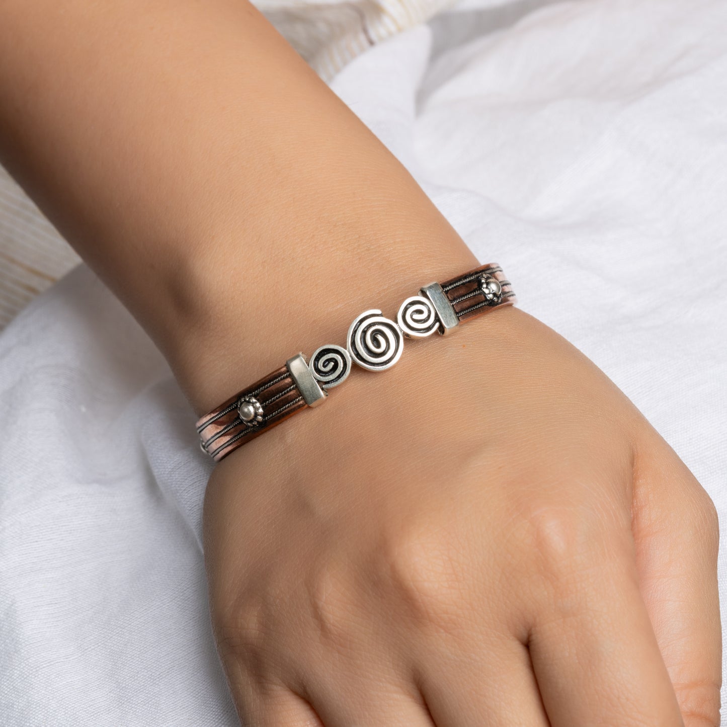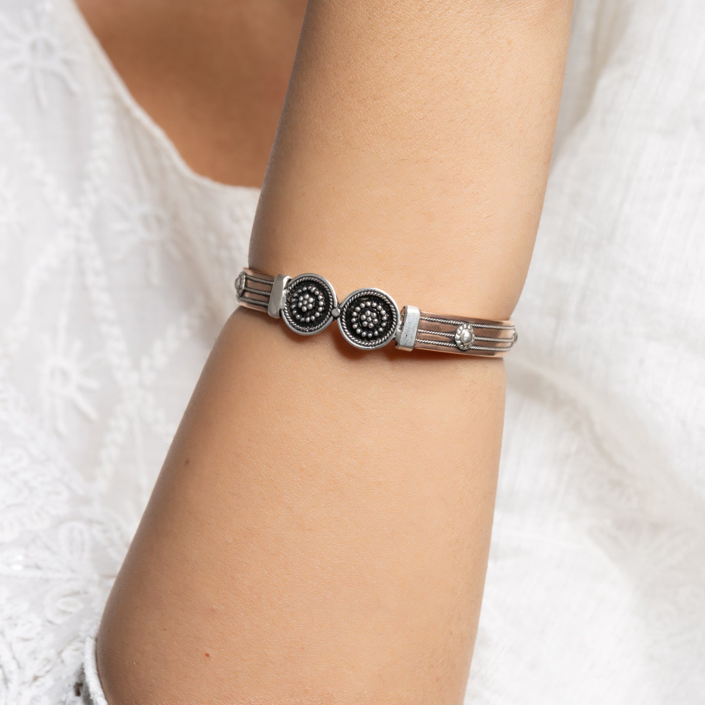 Copper-Silver Circle Rawa Design Handmade Bangle