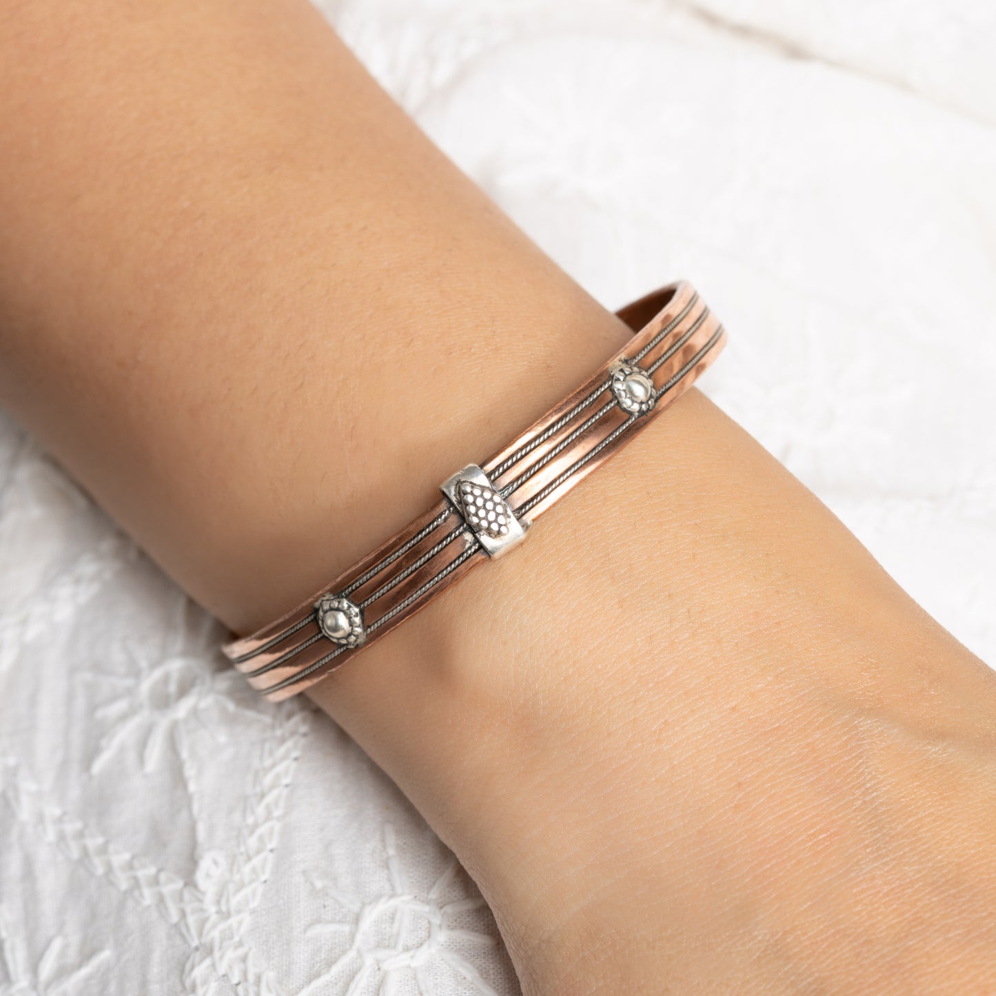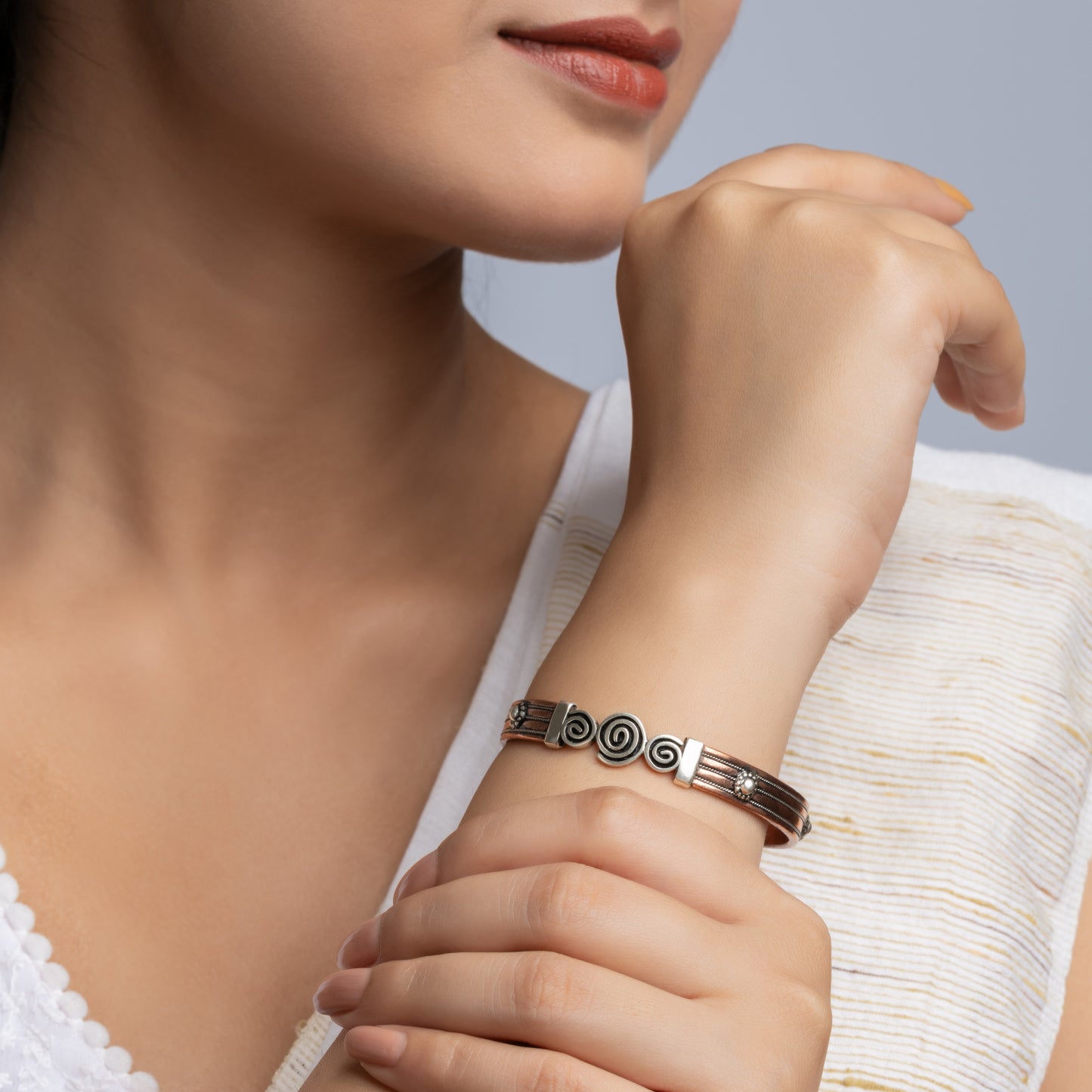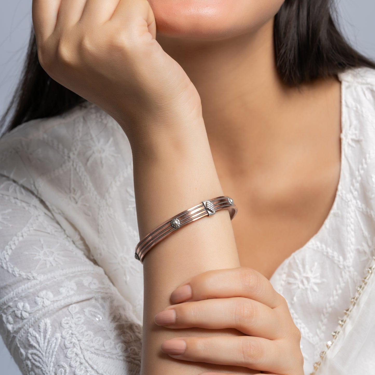 4 line copper silver bangle