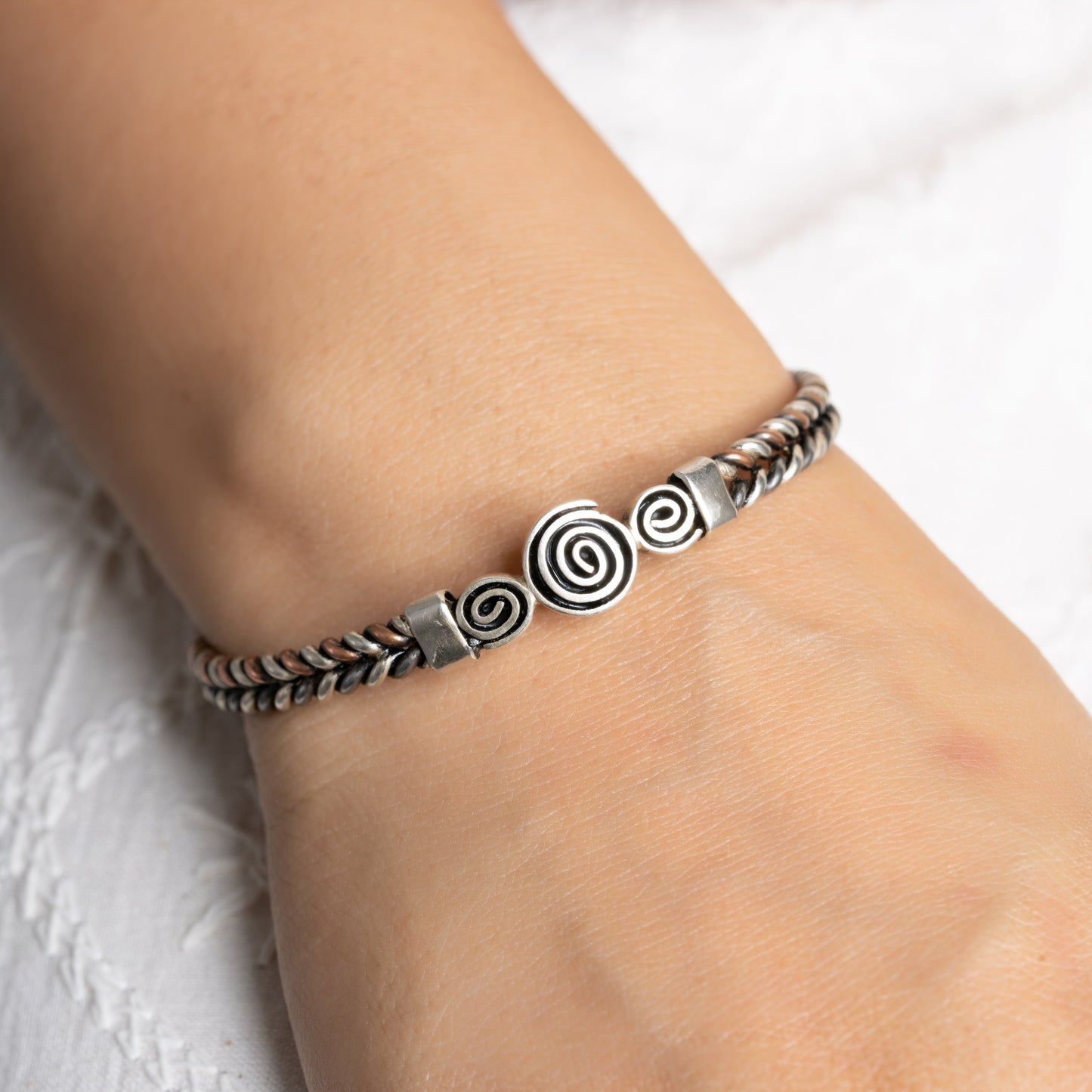 Iron-Silver Two-Line Twisted Circle Rawa Design Bangle