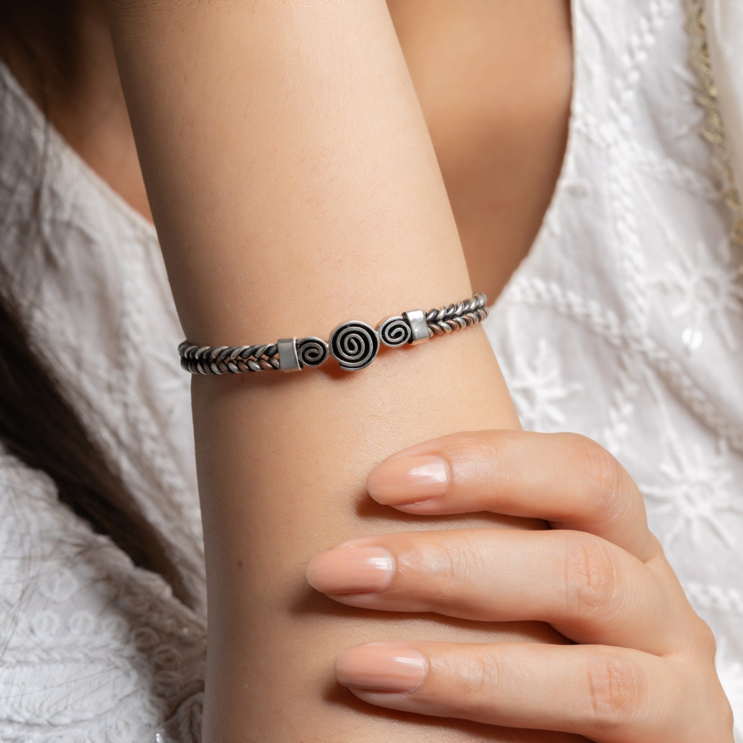Full Silver Two-Line Twisted Circle Rawa Bangle