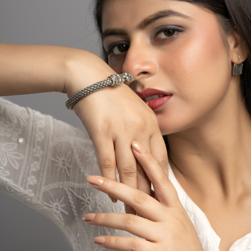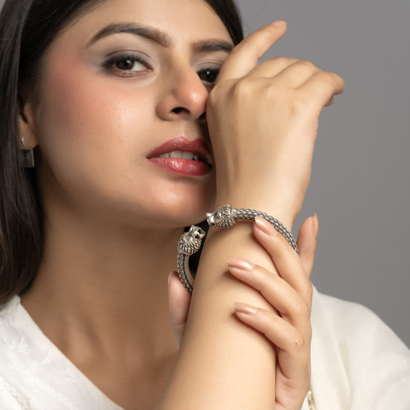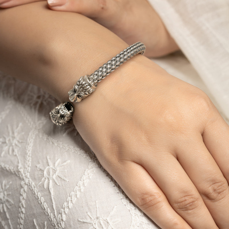 Exclusive Lion Motif Braided Pattern Twist Kada