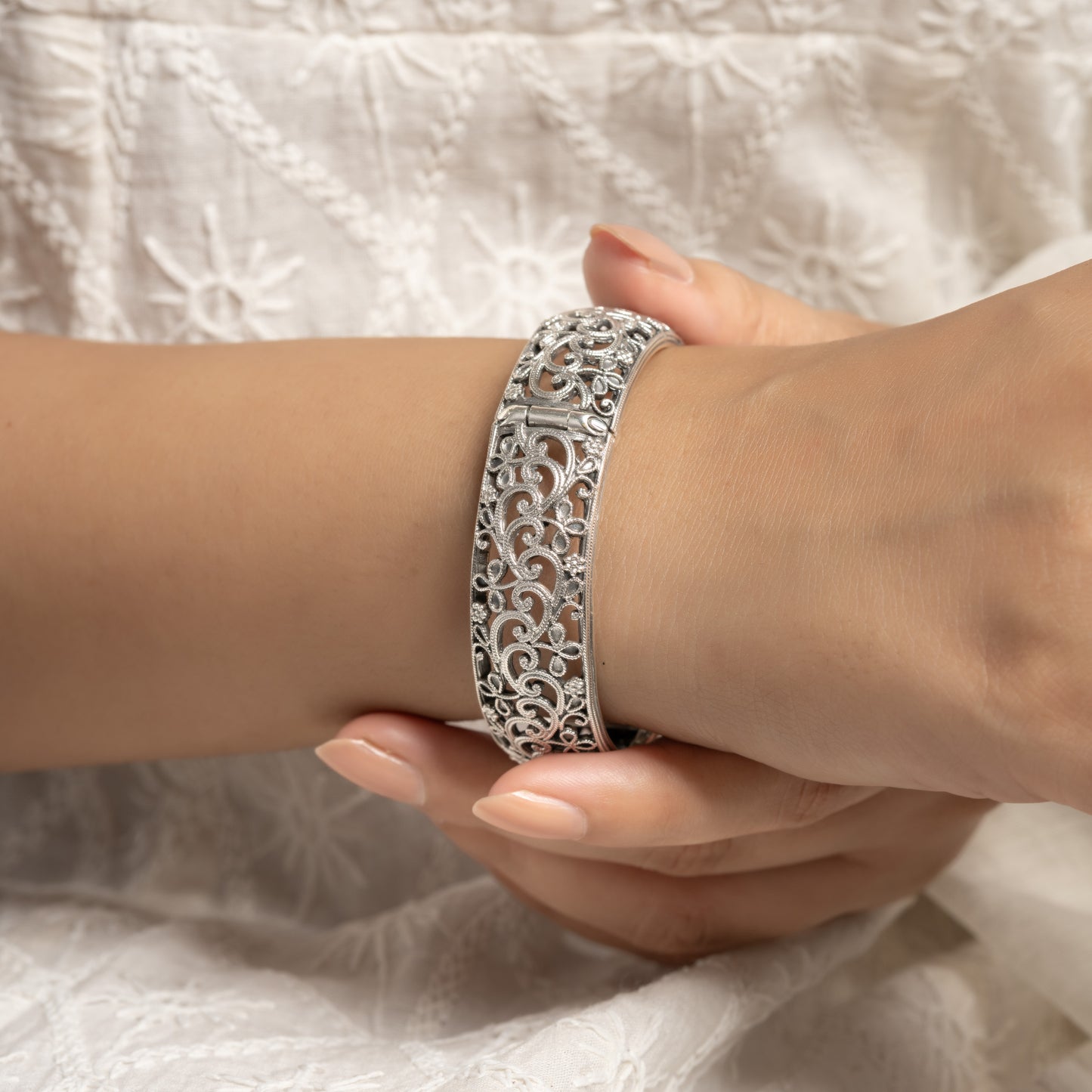 925 Silver, Openable Bangle Perfect for Wrist Size - 2.3 to 2.5, Unique Thai Filigree Work