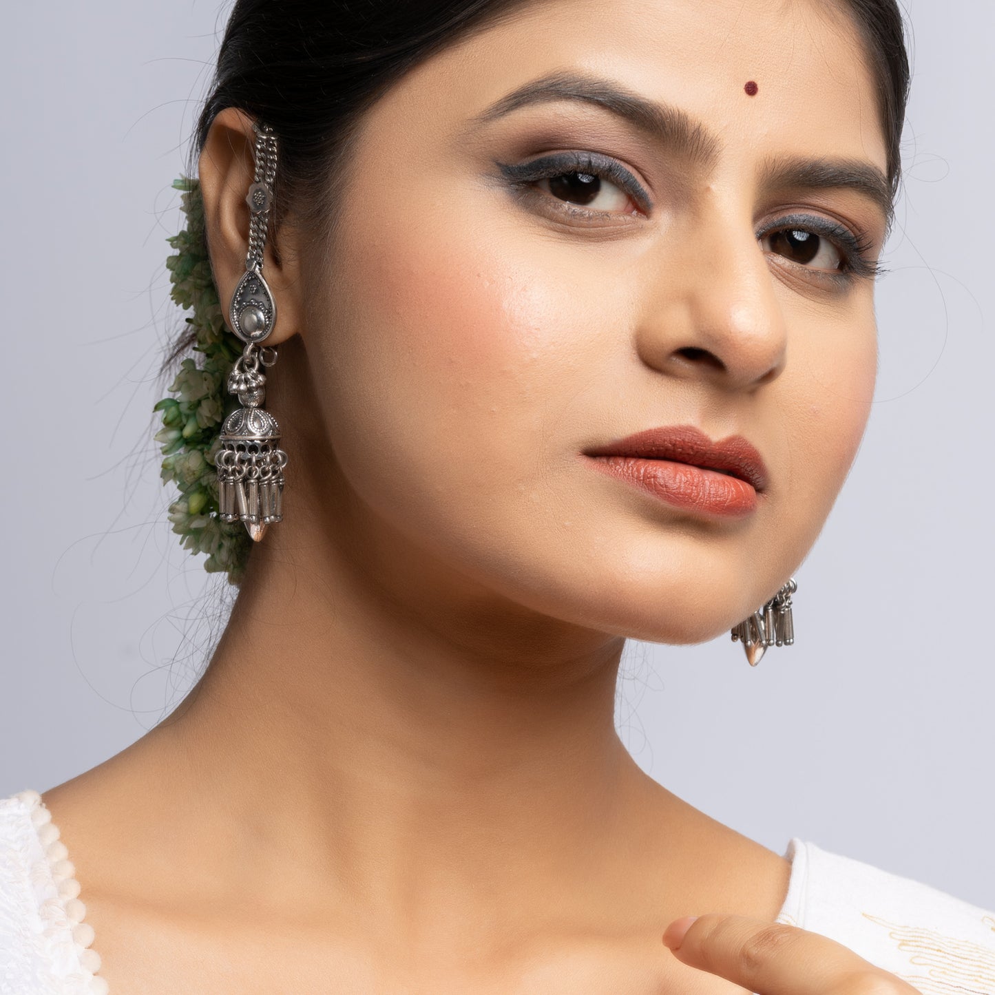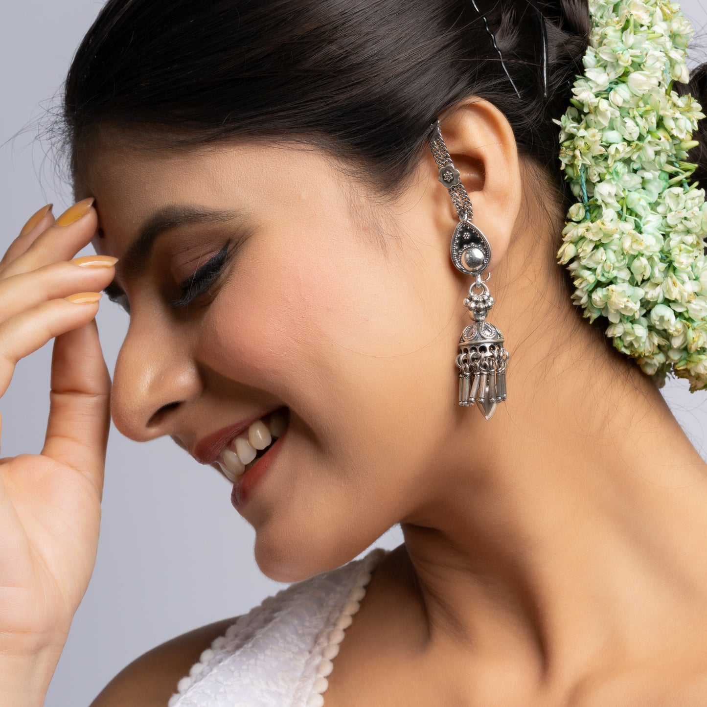 Silver Traditional Rajasthani chain tana Jhumka