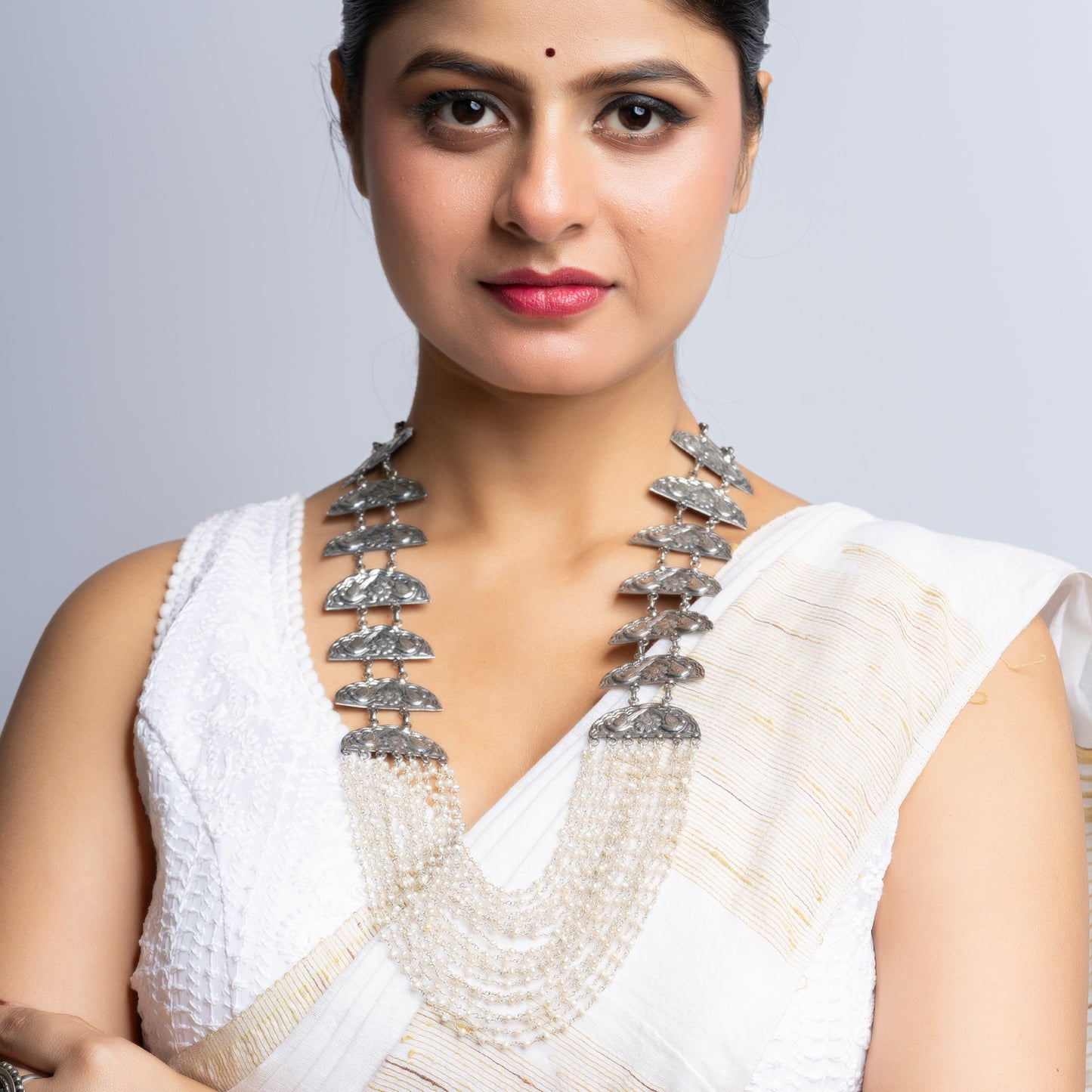 Exclusive Cultured Pearl Layered Necklace with Silver Carvings Style 2
