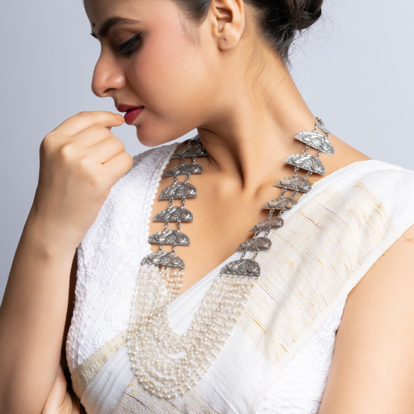Silver Rajasthani Chitai Cultured Pearl Hasuli