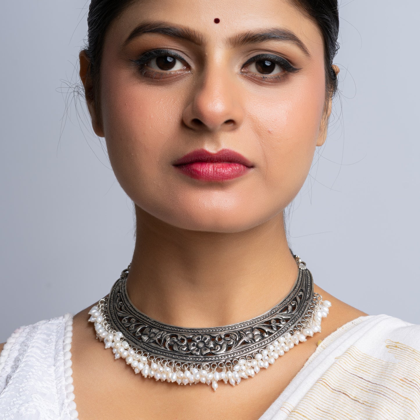 Add Silver Rajasthani Chitai Cultured Pearl Hasuli to the cart