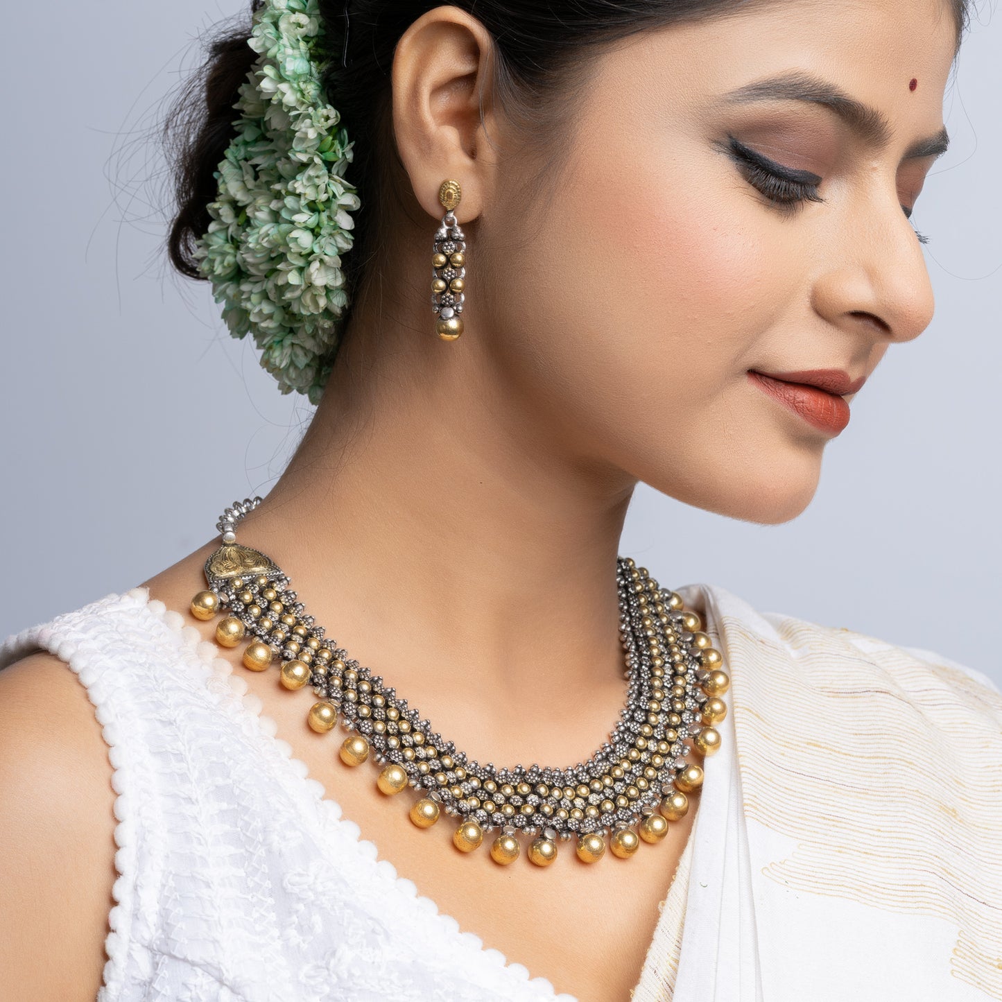 Add Two-Tone Traditional Silver Necklace With Earrings to the cart