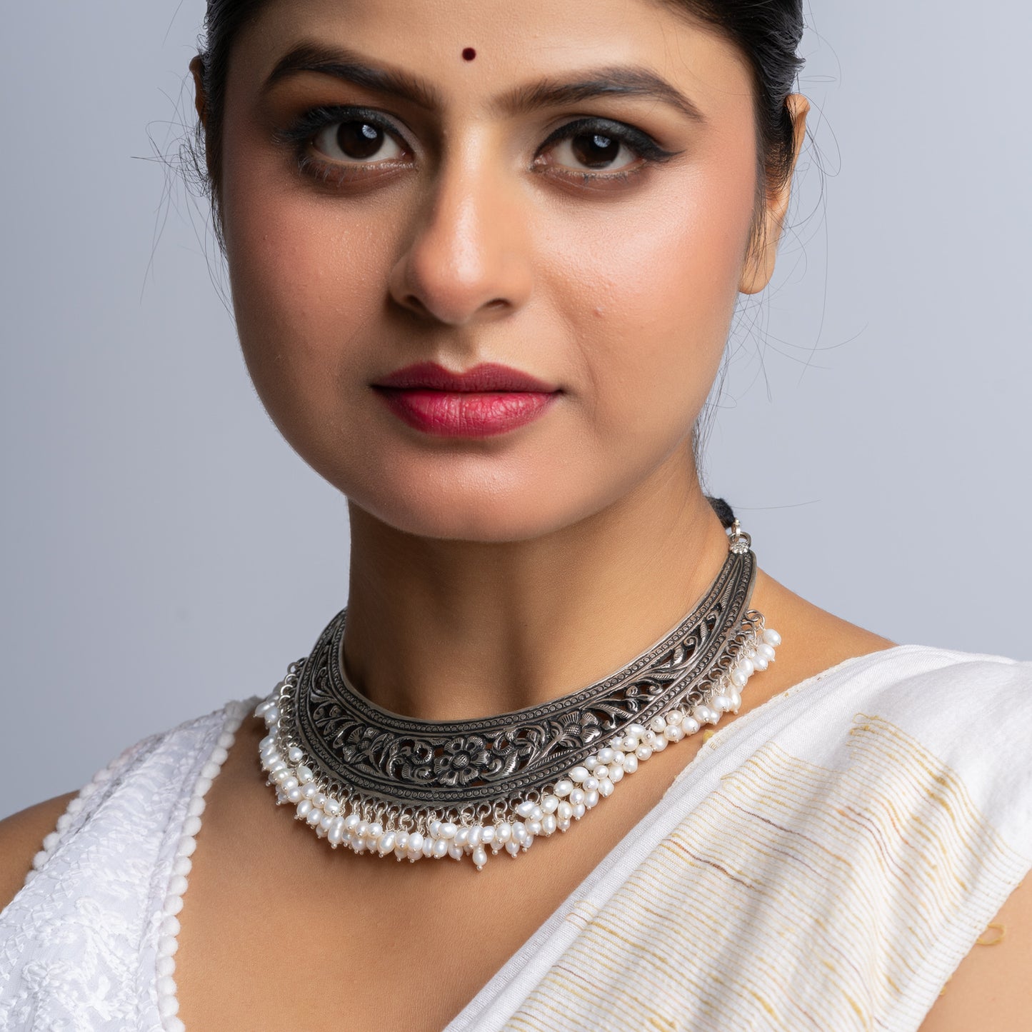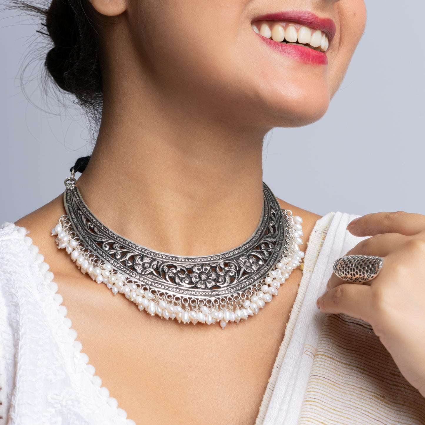 Silver Rajasthani Chitai Cultured Pearl Hasuli