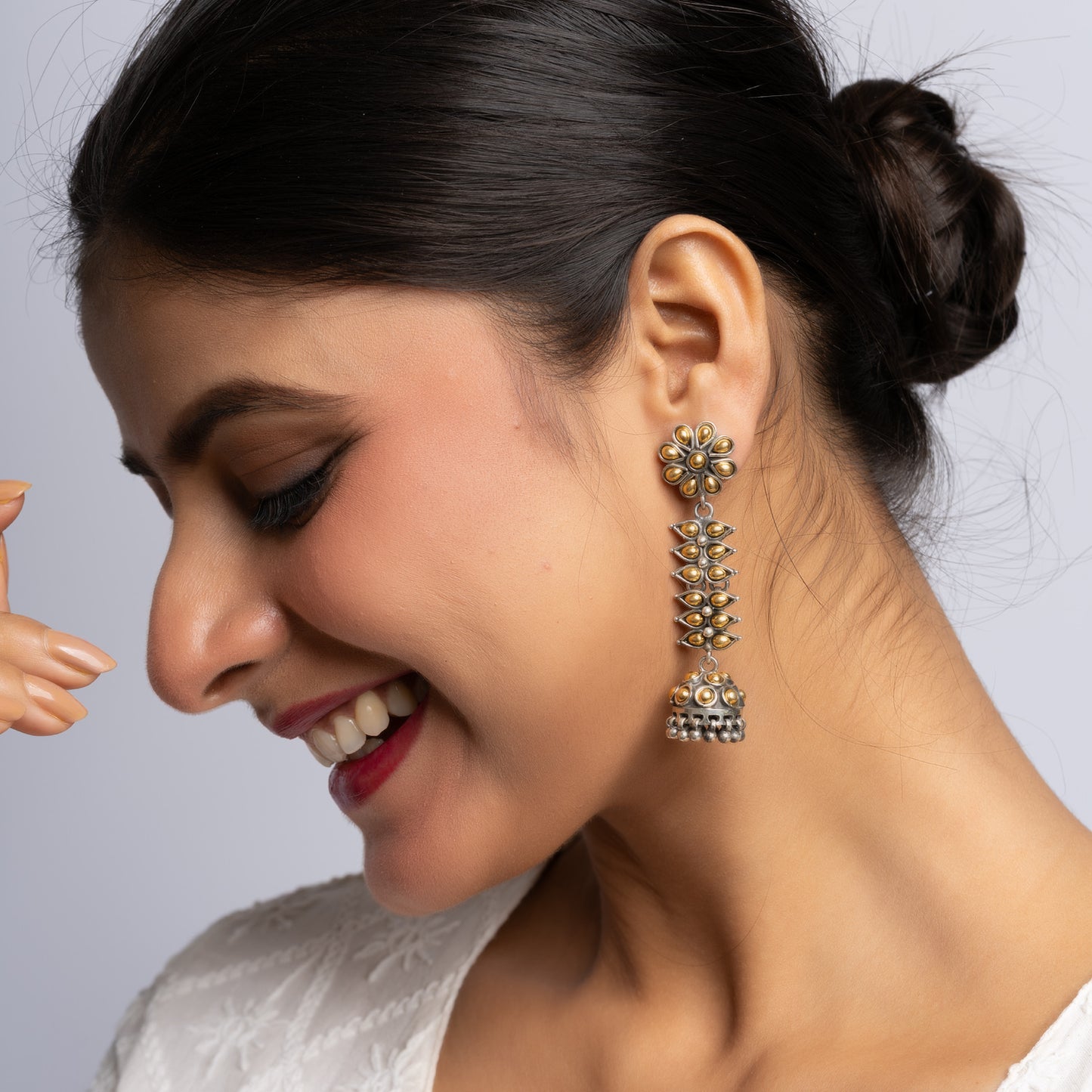 Add Silver Two Tone dot Design Statement Jhumka to the cart
