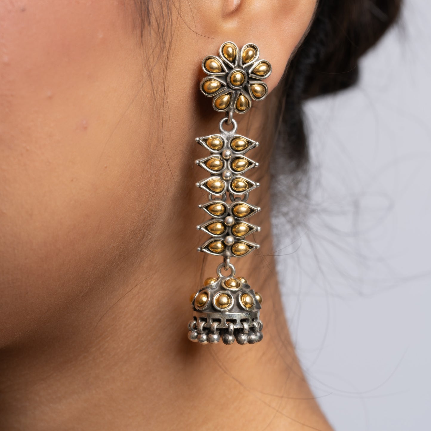 Add Silver Traditional Carving Two-Tone Jhumka to the cart