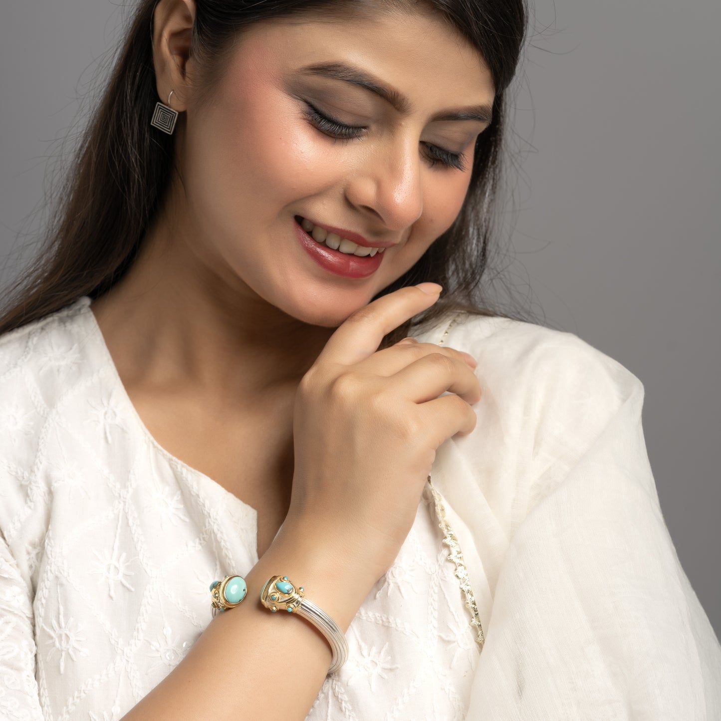 Exclusive Two Tone Openable Semi-Precious Cuff - Turquoise