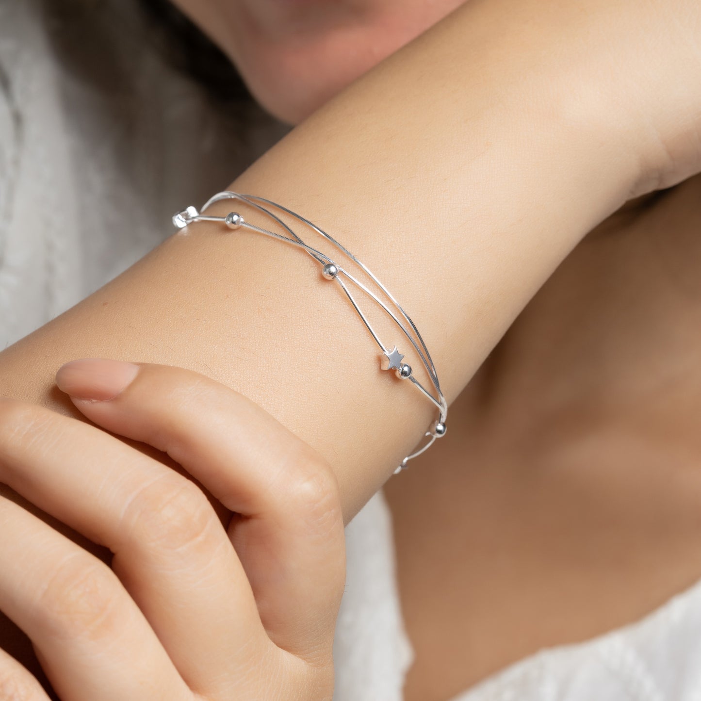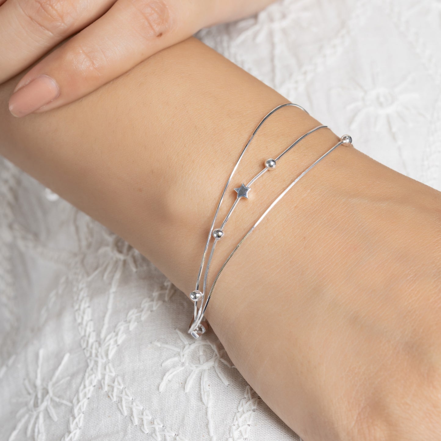 Add Fine Silver Triple layered puffed star Bracelet to the cart
