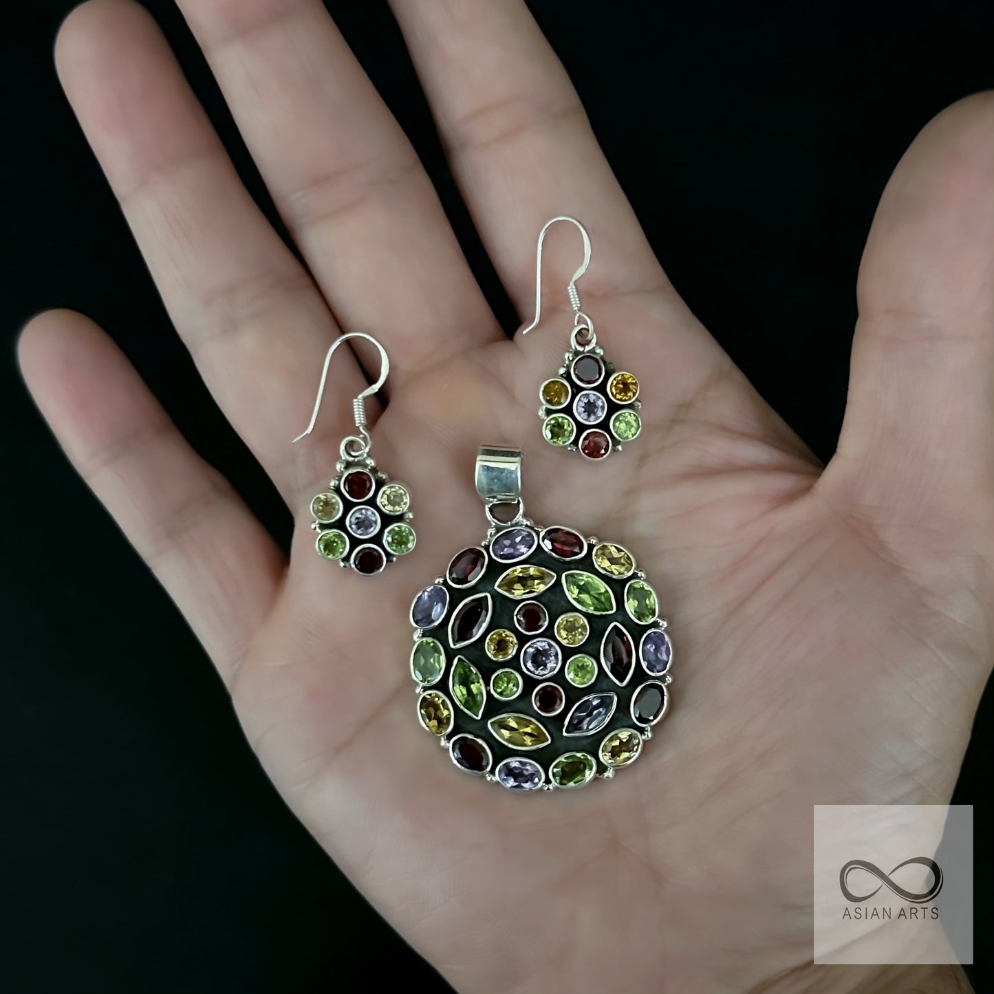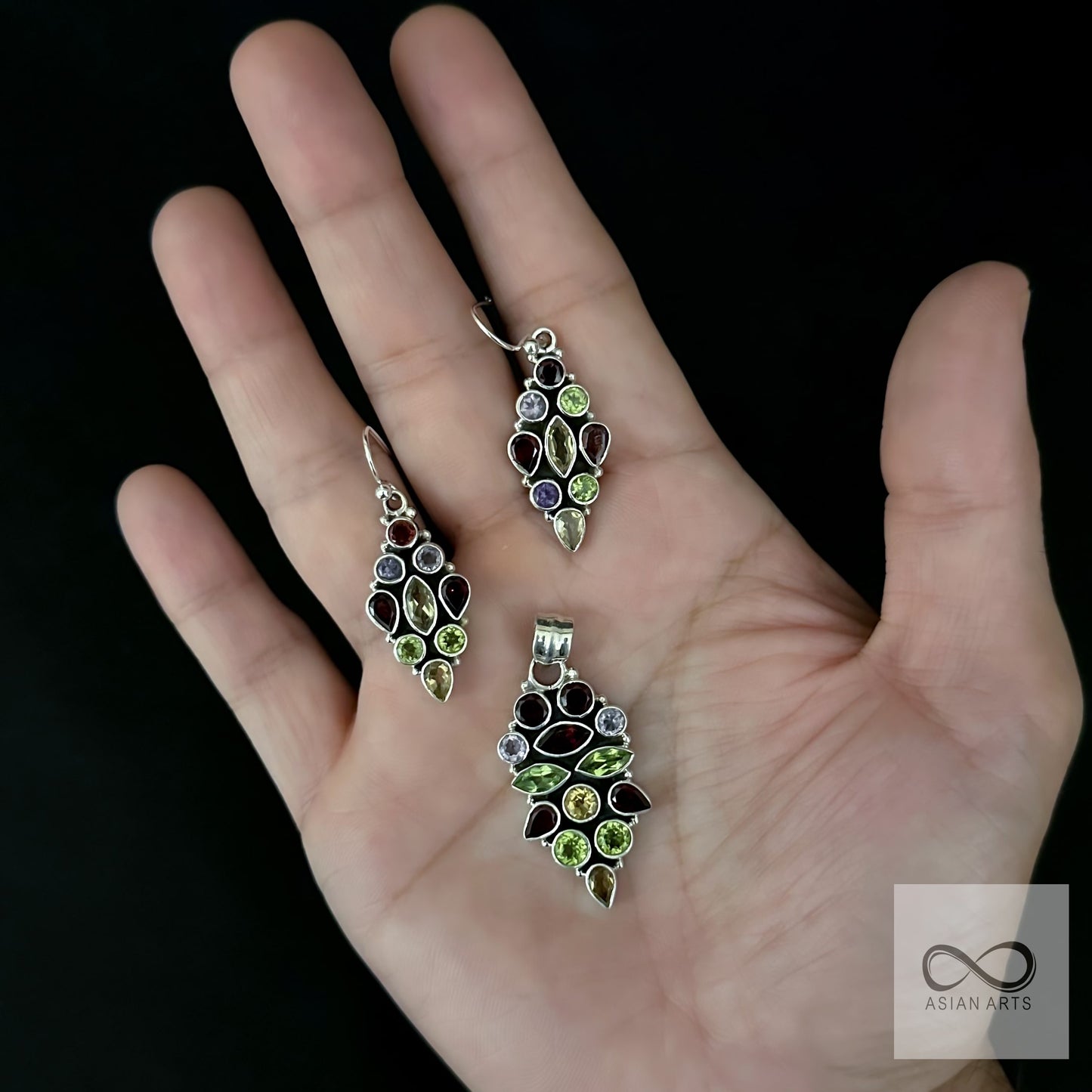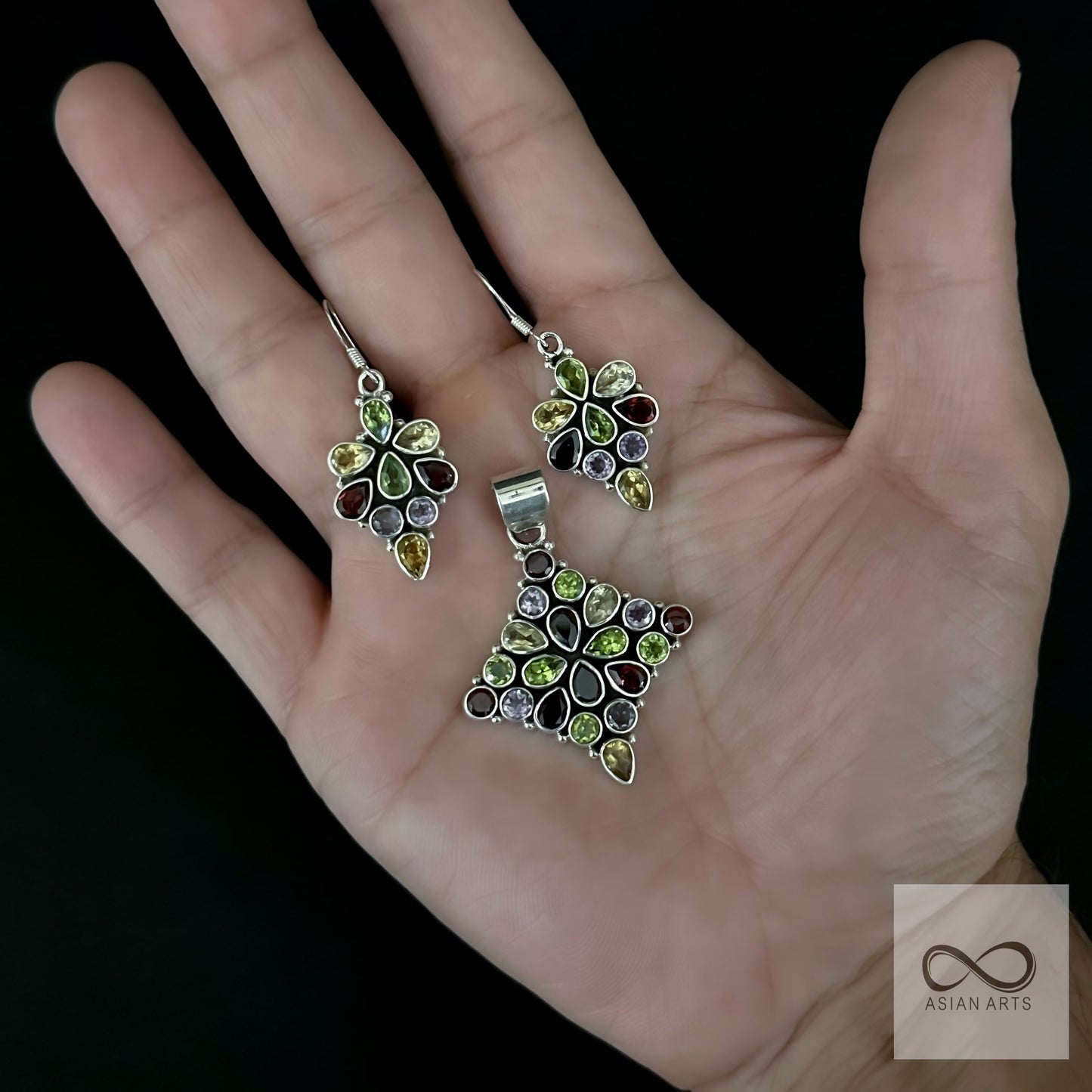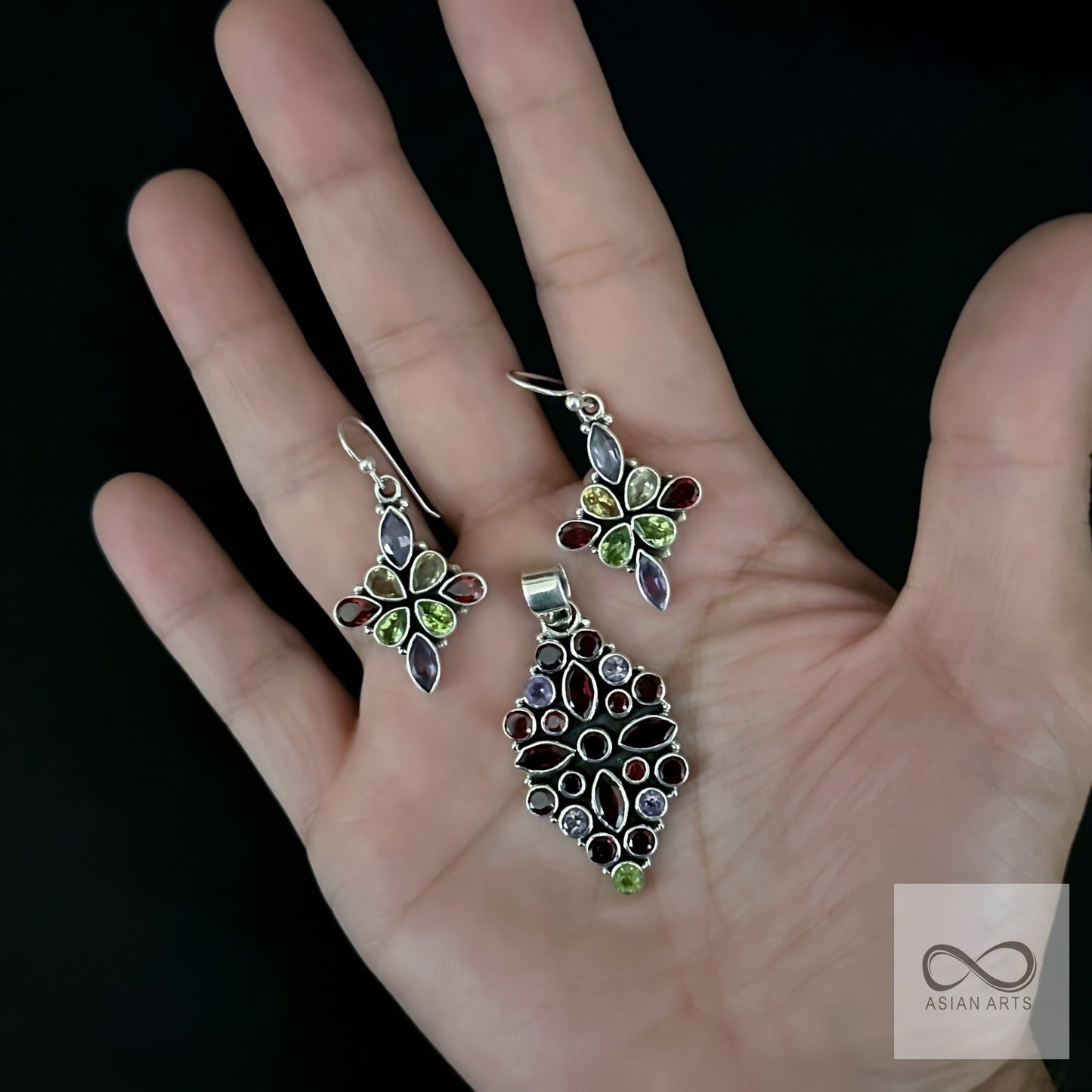 Silver Cut Stone Semi-Precious Multi Coloured Sets