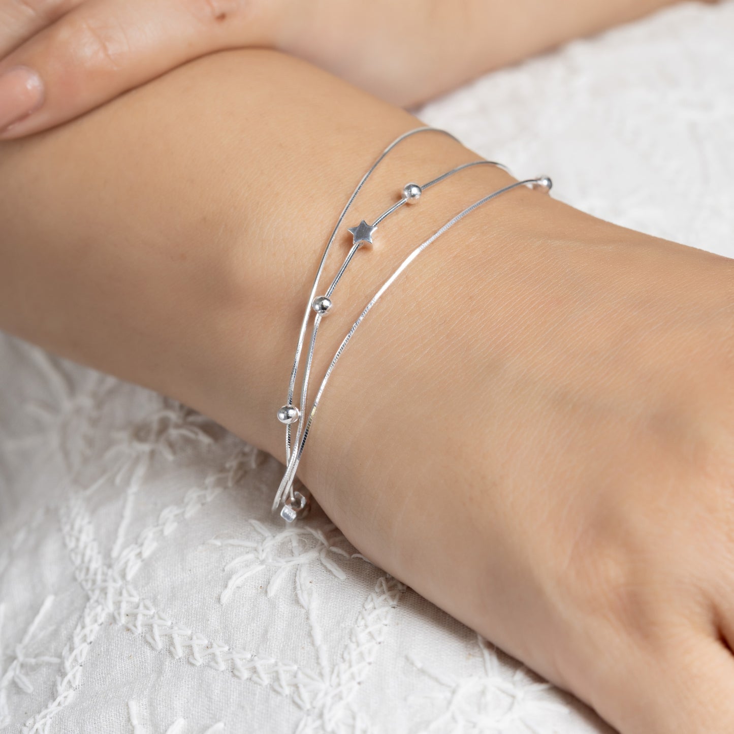 Fine Silver Triple layered puffed star Bracelet
