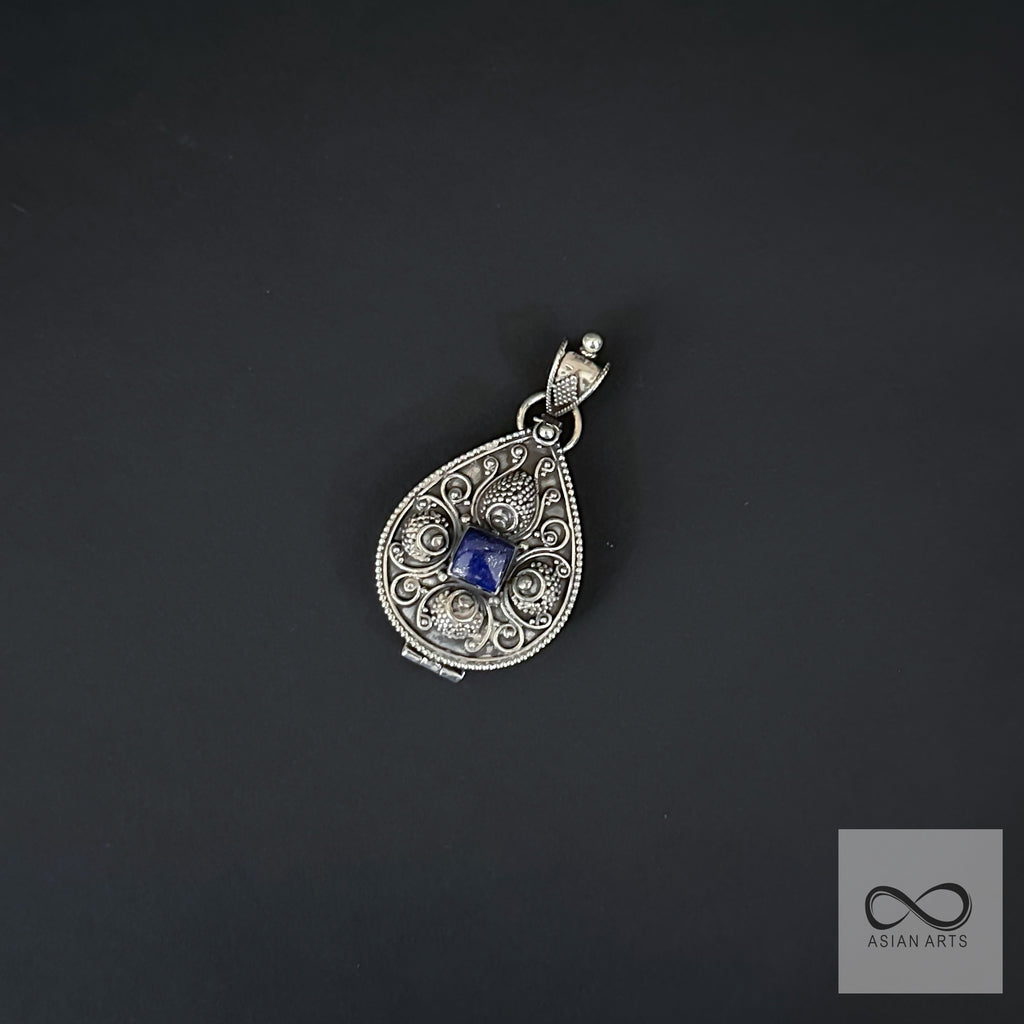 Silver Lapis Openable Locket